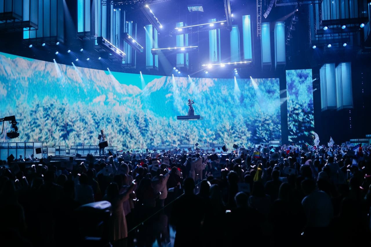Аудио: FOH и broadcast-микс строились на шине Dante 128 × 128. Каждой делегации предоставлялась персональная «виртуальная грим-комната» — выделенный MADI-канал в репетиционном блоке, чтобы артисты могли проверять in-ear-микс без выхода на основную сцену.
